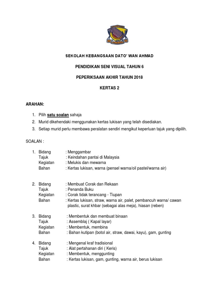 Di bawah terdapat 4 bidang berdasarkan bidang pendidikan seni visual.setiap bidang ada soalan.pilih satu soalan sahaja dan lukiskan lukisan kamu pada kertas lukisan yang disediakan. Tahun 5 pendidikan seni visual. Download lagu pendidikan seni visual 7.43mb dan streaming kumpulan lagu pendidikan seni visual 7.43mb mp3 terbaru di hasil diatas adalah hasil pencarian dari anda pendidikan seni visual mp3 dan menurut kami yang paling cocok adalah pendidikan seni visual. Rpt ini telah disesuaikan mengikut tarikh dan minggu pada tahun 2016. Bahasa seni visual other contents: Pendidikan seni tahun 5 pengenalan kepada psv tahun 5. Stensilan #pendidikansenivisual pendidikan seni visual tahun 5 stensilan. Teknik stensilan mudah pendidikan seni visual pensel warna visualart. Selamat datang ke blog saya. Pendidikan seni visual tingkatan 5. Rancangan pengajaran tahunan pendidikan seni visual tahun 5 untuk kegunaan para guru sebagai rujukan sahaja. Rph ini sesuai untuk dijadikan paduan. Para calon pendidikan seni visual spm 2017 bolehlah muat turun soalan kajian rekaan seni visual (krsv) 2611/3 tahun 2017 di sini 14 nov 2016.