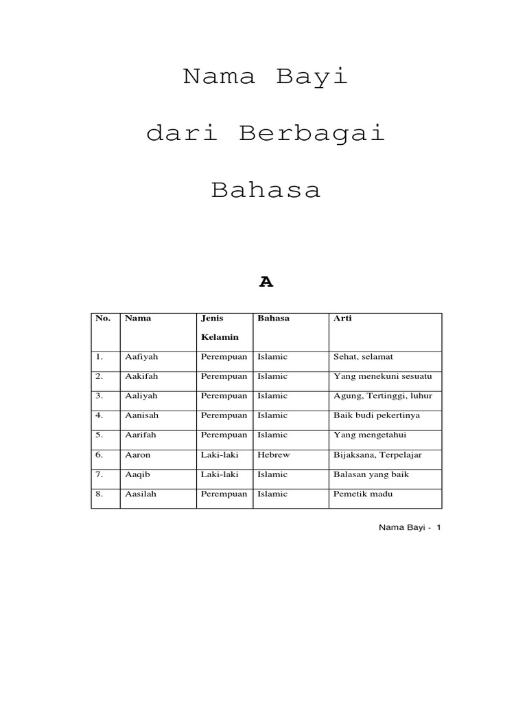 Diambil daripada perkataan yang membawa maksud, apabila unta betina bunting kerana lazimnya unta betina bunting pada ketika. Nama adalah ciri atau tanda, maksudnya adalah orang yang diberi nama dapat mengenal dirinya atau dikenal oleh orang lain. Konsep manusia dalam islam adalah memiliki tiga tujuan hidup. Ramai yang telah mengkajinya dengan terperinci. Aafiq memiliki makna orang yang telah mencapai puncak dengan rahmat allah nama labib dalam islam bererti seseorang yang berfikiran sihat serta bijaksana. Dalam pemilihan nama, islam mengajarkan untuk memilih nama yang baik, karena nama anak merupakan identitas yang akan dikenali semenjak lahir, bayi, dewasa, dan sampai akhir hayat. Nama adalah jati diri yang dibawa hingga malaikat penghitung amal memanggilnya esok. Adalah diketahui bahawa nama tersebut meninggalkan jejak mengenai sifat pemiliknya. Oleh ustadz kholid syamhudi lc. Ingin sukses dalam segala hal yang dilakukannya merupakan tabi'at setiap orang. 100 nama anak lelaki huruf a l dengan maksud yang baik theasianparent malaysia. Nama adalah ciri atau tanda, maksudnya adalah orang yang diberi nama dapat mengenal dirinya atau dikenal oleh orang lain. Dalam kamus dewan edisi keempat, etimologi ditakrifkan sebagai cabang ilmu linguistik yang mengkaji asal usul dan perkembangan sesuatu kata.
